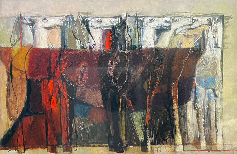 生誕100年に当たる本年に芝田米三の画業を回顧する展覧会は噂すら耳にしていません。誠に残念でなりません。午年にあたる今正月、安井賞受賞前後に描かれた芝田米三の青春時代の意欲作を画廊で初公開します。本作の「青春の息吹」を忘れることなく、一層精進して参りたいと存じます。今年もよろしくお願いいたします。