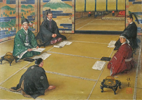 ![]() 田村宗立「接待図」 明治中期頃 油彩 | |