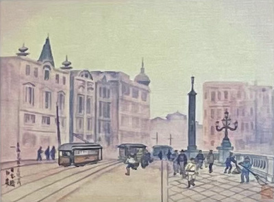 ![]() 河合新蔵 1「日本橋、朝霧」 1921(大正10)年 |