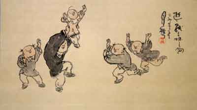 ![]() 「遊戯三昧之図」1915(大正4)年 31.8×55.5 cm 絹本彩色/軸装 |